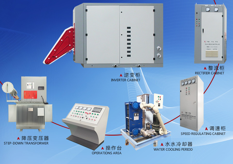 固態(tài)高頻基本原理:普通三相交流電經(jīng)變壓器降壓后,進(jìn)入整流柜經(jīng)過整流、調(diào)壓、濾波環(huán)節(jié)后,變?yōu)檫B續(xù)可調(diào)的直流電,再進(jìn)入逆變橋(主要功率元件采用大功率晶體管MOSFET)變?yōu)楦哳l電流,供給負(fù)載槽路即可用于感應(yīng)加熱。逆變槽路功率單元采用模塊化結(jié)構(gòu),每對(duì)功率單元可輸出50KW以上,設(shè)備功率不同,所用功率單元數(shù)量就不同。槽路為串并混聯(lián)諧振形式,沒有高電壓,沒有輸出變壓器。