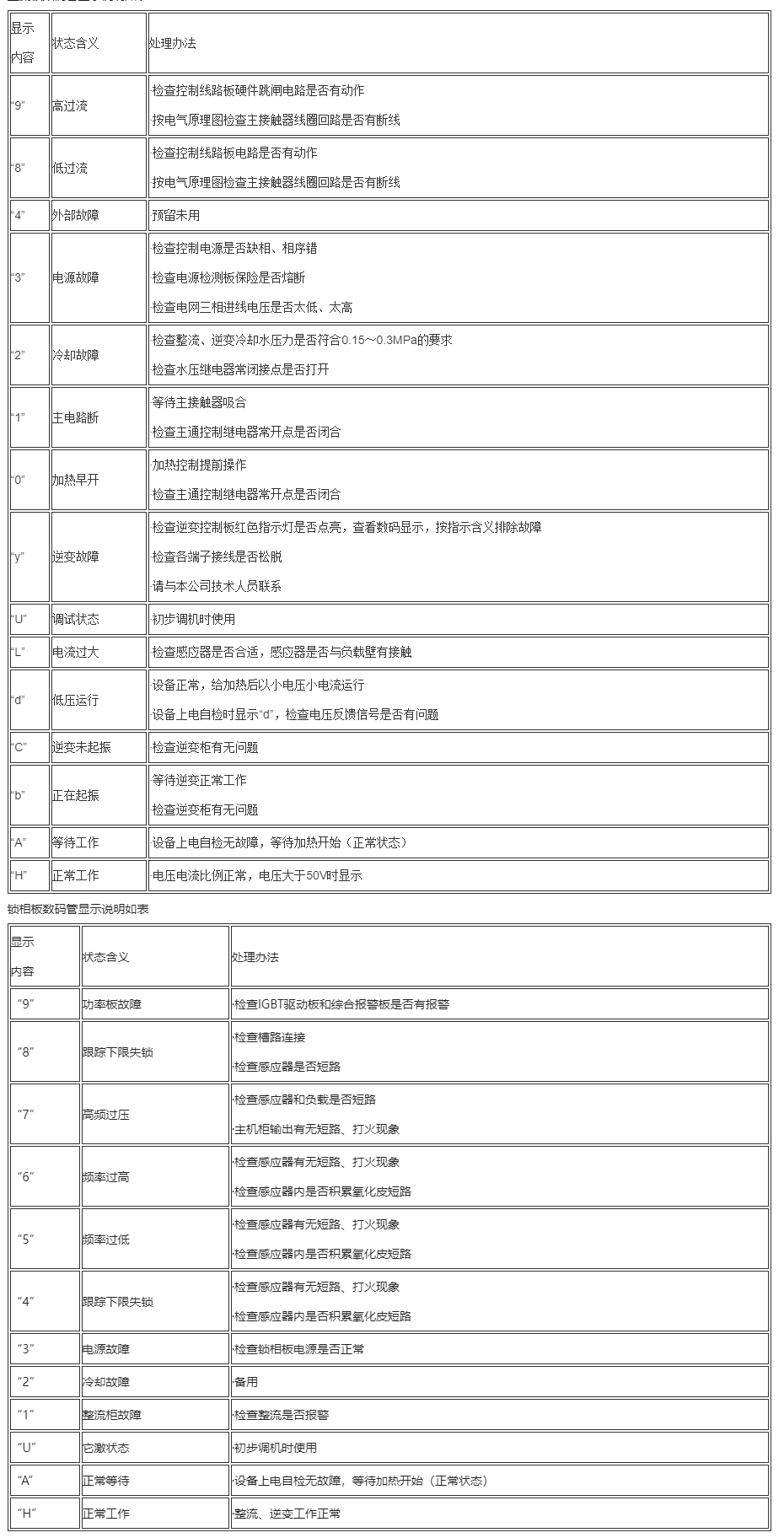 ? ? ? ?整機(jī)設(shè)置二十余種保護(hù)措施,提高設(shè)備穩(wěn)定性,防止設(shè)備損壞。有報(bào)警信息經(jīng)控制板相應(yīng)處理后送至STC單片機(jī)。通過數(shù)碼顯示,維護(hù)人員可方便了解設(shè)備故障原因及處理對(duì)策。